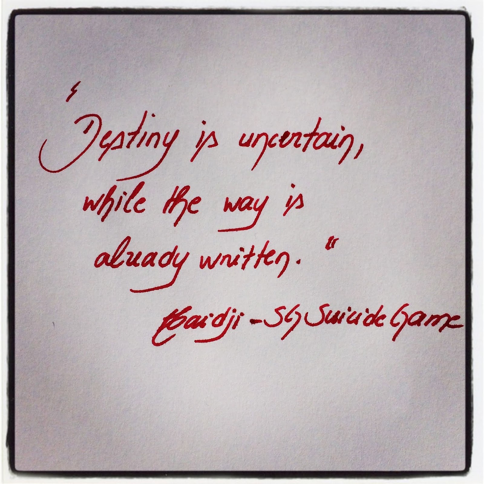 Book Quote: "Destiny is uncertain, while the way is already written." Haidji - SG Suicide Game